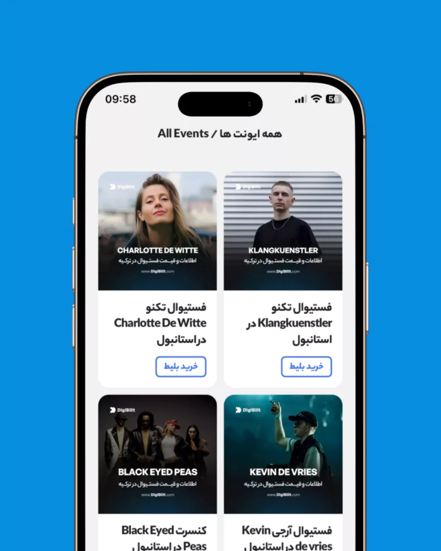 طراحی برند و پلتفرم فروش بلیت ایونت‌های بین‌المللی: DigiBilit