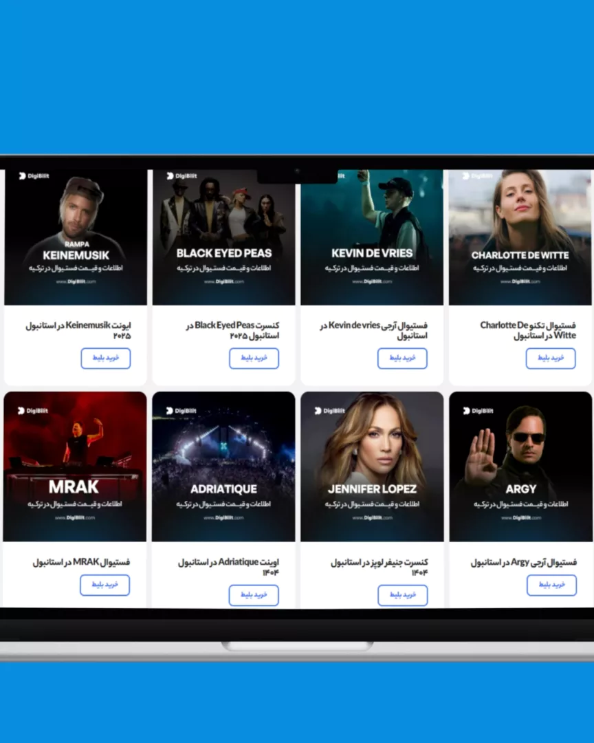 این نمونه‌کار یکی از جامع‌ترین پروژه‌های طراحی برند، طراحی سایت، تجربه کاربری و سئو در حوزه گردشگری موسیقی است. DigiBilit توانست از صفر تا صد، از طراحی هویت برند تا ایجاد ترافیک ارگانیک، به یک مدل موفق در بازار بلیت کنسرت تبدیل شود. ساختار محتوایی دقیق و سئو پیشرفته باعث شد صفحات ایونت‌ها در نتایج جستجوی گوگل جایگاه بالایی کسب کنند و نرخ تبدیل کاربران به مشتریان وفادار افزایش یابد.